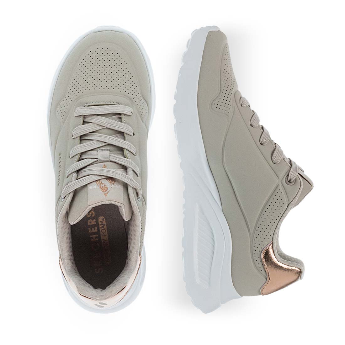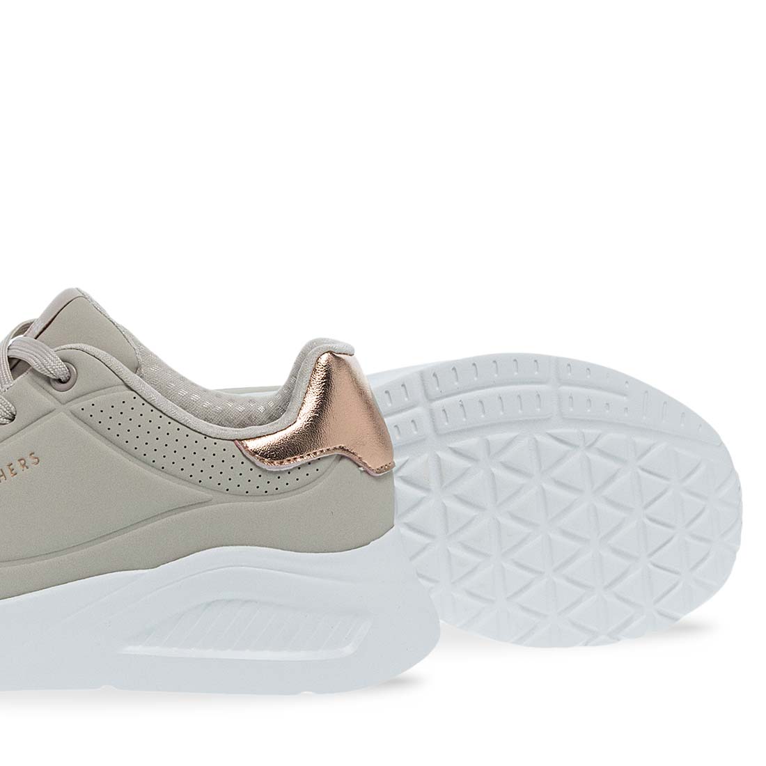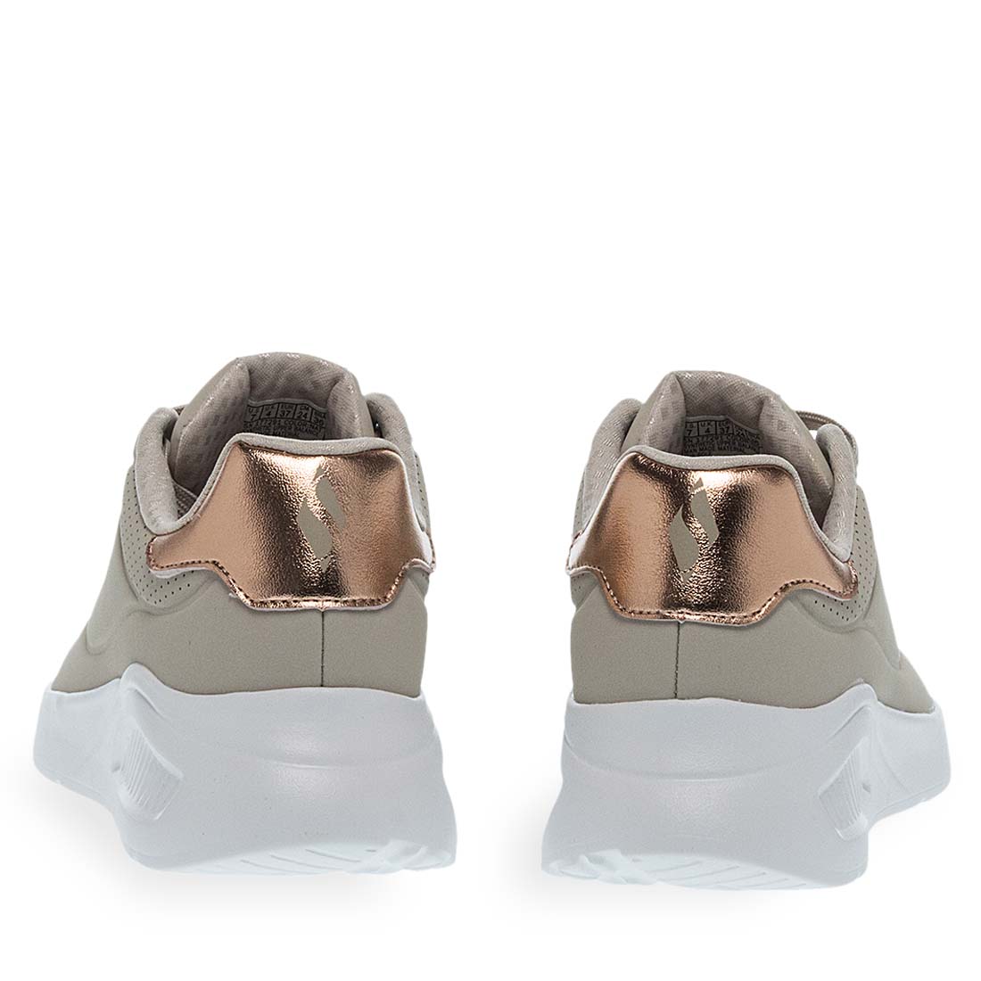 Women''s trainers by Skechers. Women’s Skechers trainers in beige with rose gold details. Style and maximum comfort with air sole and Memory Foam.